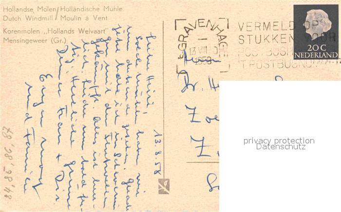 alte Postkarte Windmuehle Korenmolen Mensingeweer postalisch gelaufen Erhaltung siehe scans [PaolaD17]