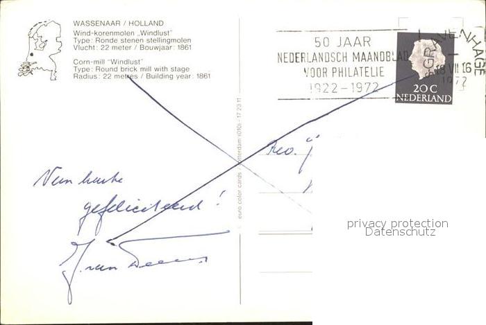 alte Postkarte Windmuehle Korenmolen Windlust Wassenaar Holland postalisch gelaufen Erhaltung siehe scans