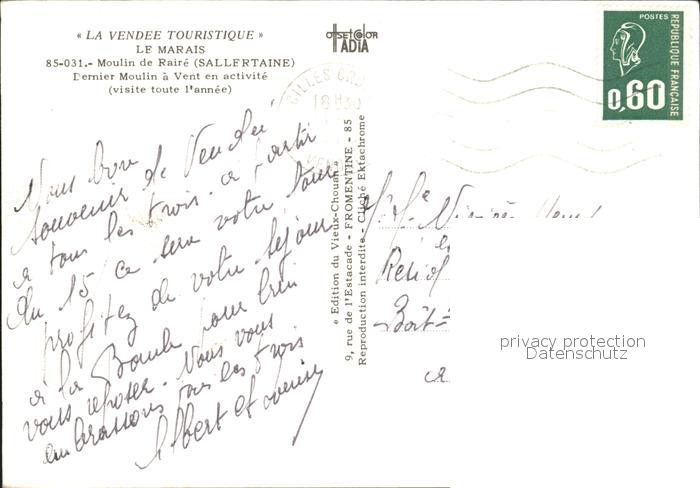 alte Postkarte Windmuehle Le Marais Moulin Raire postalisch gelaufen Erhaltung siehe scans
