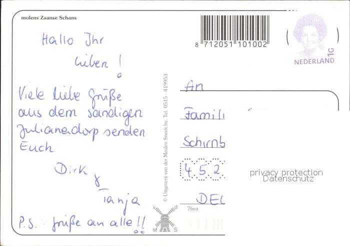 alte Postkarte Windmuehle Molens Zaanse Schans postalisch gelaufen Erhaltung siehe scans