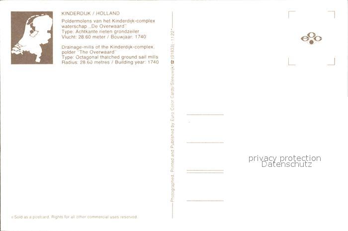 Windmuehle Poldermolen Kinderdijk-Complex Waterschap De Overwaard postalisch nicht gelaufen Erhaltung siehe scans