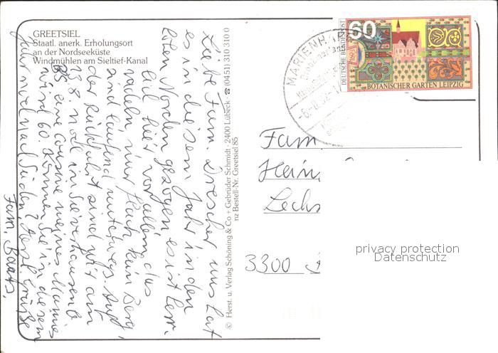 alte Postkarte Windmuehle Sieltief-Kanal Greetsiel postalisch gelaufen Erhaltung siehe scans