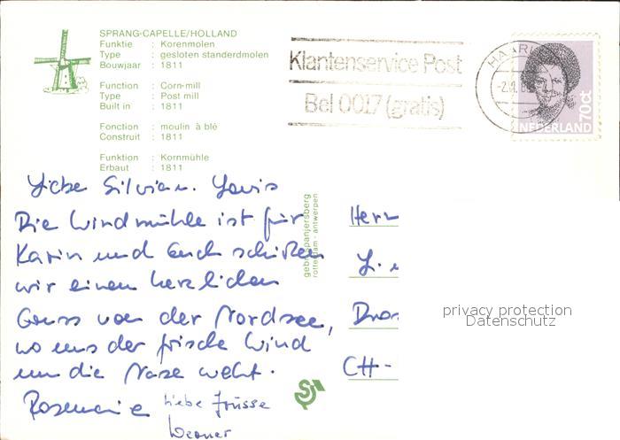 alte Postkarte Windmuehle Sprang-Capelle Korenmolen Kuh postalisch gelaufen Erhaltung siehe scans