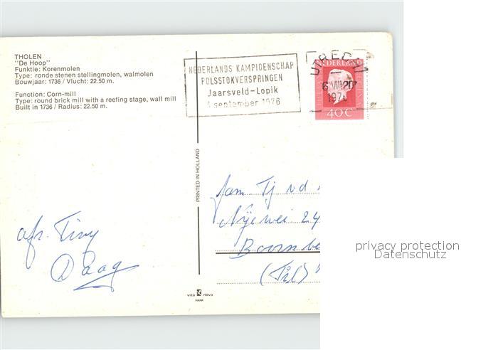 alte Postkarte Windmuehle Tholen De Hoop Korenmolen postalisch gelaufen Erhaltung siehe scans