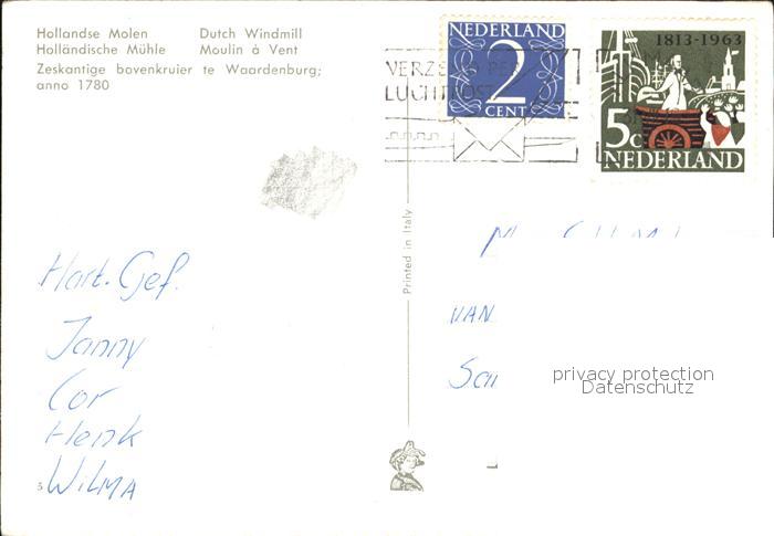 alte Postkarte Windmuehle Waardenburg Holland postalisch gelaufen Erhaltung siehe scans