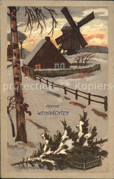 alte Postkarte Windmuehle Weihnachten Tannenbaum Litho postalisch gelaufen Erhaltung siehe scans