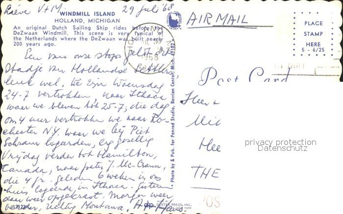 alte Postkarte Windmuehle Windmill Island Holland Michigan Dutch Sailing Ship postalisch gelaufen Erhaltung siehe scans