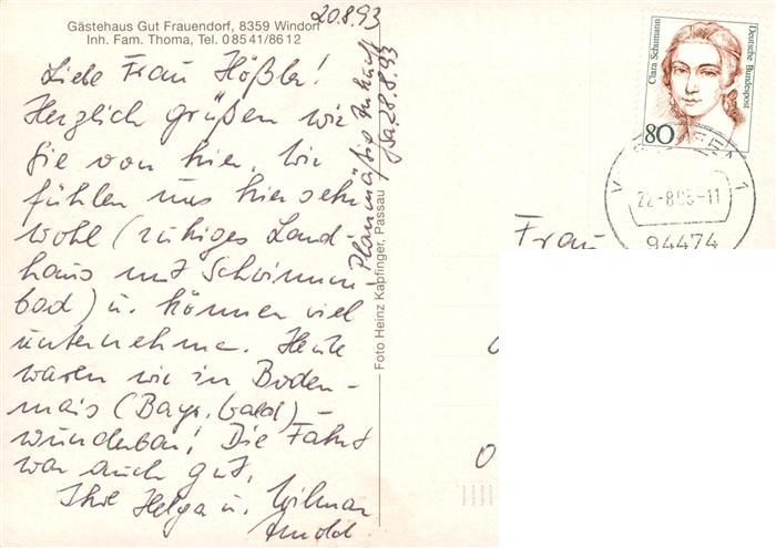 73915460 alte Postkarte Windorf Niederbayern Gaestehaus Gut Frauendorf postalisch gelaufen Erhaltung siehe scans [FriedD77] KatCode: 11110009275159