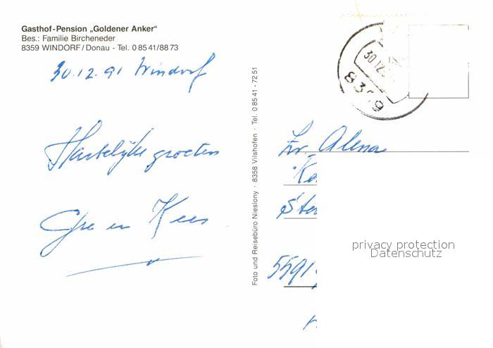 72855853 alte Postkarte Windorf Niederbayern Gasthof Pension Goldener Anker Hallenbad Swimming Pool postalisch gelaufen Erhaltung siehe scans [FriedD77] KatCode: 11110009275159