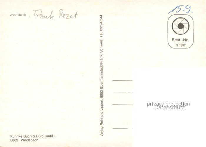 73763324 Windsbach Ortsmotiv postalisch nicht gelaufen Erhaltung siehe scans [WerneD78] KatCode: 11110009571226