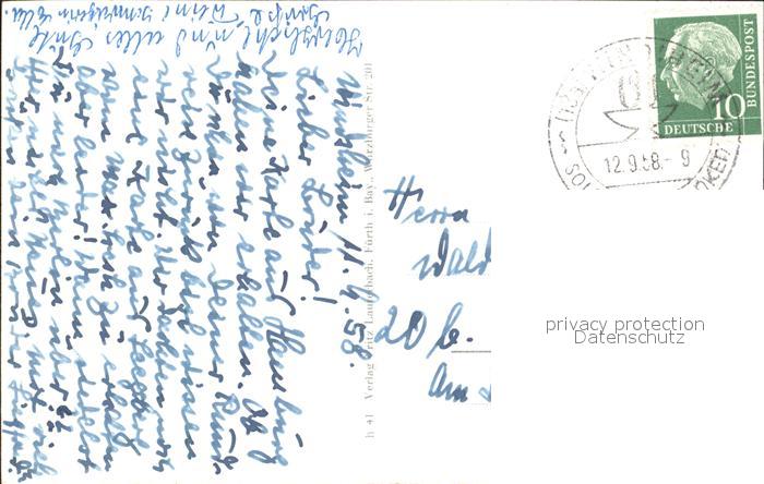 72097299 alte Postkarte Windsheim Bad Kurhaus Windshei Kornmarkt Brunnen Kurhaus Rathaus St Kilianskirche Martin Luther Platz Kurpark postalisch gelaufen Erhaltung siehe scans KatCode: 11110009575112