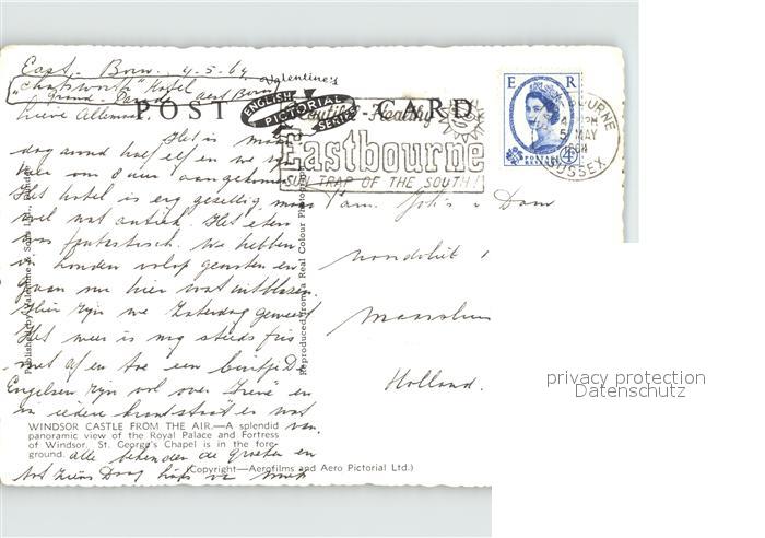 old postcard Windsor Castle Fliegeraufnahme postalisch gelaufen Erhaltung siehe scans