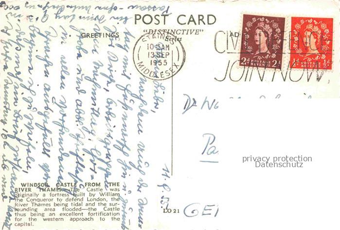 74136585 old postcard Windsor Castle London UK From The River Thames postalisch gelaufen Erhaltung siehe scans [IrynaD87] KatCode: 11570UKI1I11AA