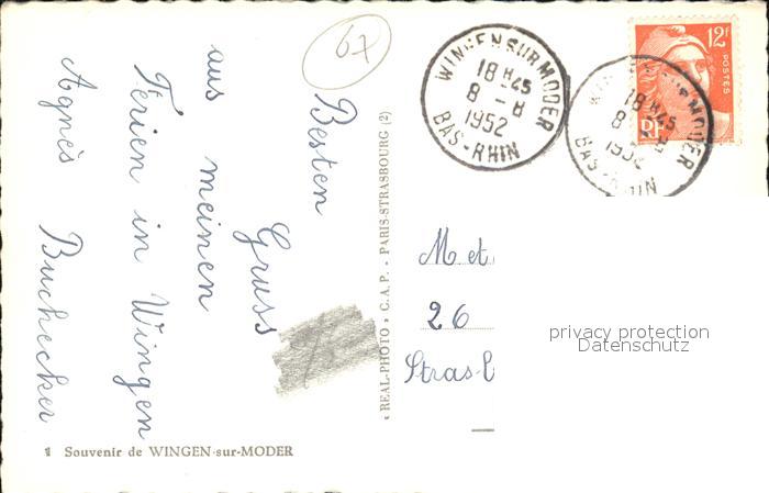 12537816 carte postale Wingen-sur-Moder Ortsansicht postalisch gelaufen Erhaltung siehe scans [KathaD75 dp141box] KatCode: 11170067467538