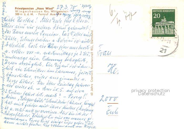 72785177 alte Postkarte Wingeshausen Privatpension Haus Wied Landschaftspanorama postalisch gelaufen Erhaltung siehe scans [FriedD77] KatCode: 11110005970004