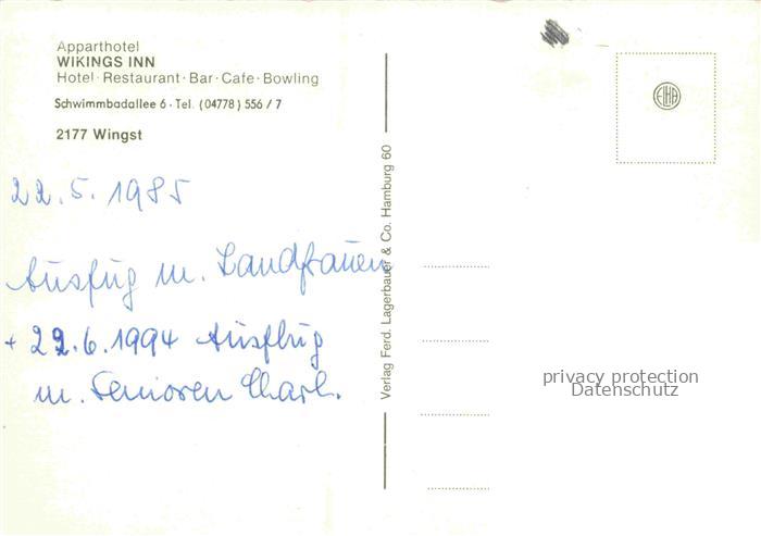 74156048 Wingst Cuxhaven Niedersachsen Apparthotel Wikings Inn Restaurant Buffet Kegelbahn postalisch nicht gelaufen Erhaltung siehe scans [FriedD77] KatCode: 11110003352056