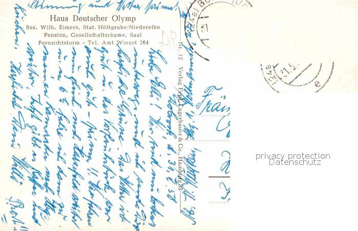 72792528 alte Postkarte Wingst Gasthaus Deutscher Olymp Waldpartie Steingrab Fernsichtturm postalisch gelaufen Erhaltung siehe scans [AndreD76] KatCode: 11110003352056