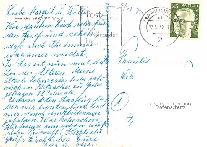 72915673 alte Postkarte Wingst Haus Quellental postalisch gelaufen Erhaltung siehe scans [KathaD81] KatCode: 11110003352056