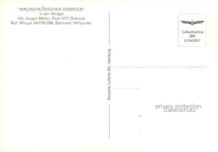73170505 Wingst Waldschloesschen Dobrock in der Wingst Fliegeraufnahme postalisch nicht gelaufen Erhaltung siehe scans [FriedD77] KatCode: 11110003352056