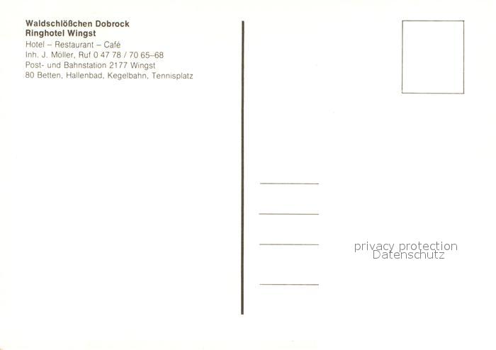 73727205 Wingst Waldschloesschen Dobrock Ringhotel Restaurant Hallenbad postalisch nicht gelaufen Erhaltung siehe scans [FriedD77] KatCode: 11110003352056