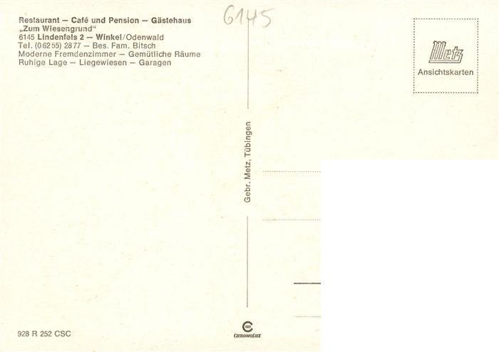 73894088 Winkel Odenwald Restaurant Cafe Pension Gaestehaus Zum Wiesengrund postalisch nicht gelaufen Erhaltung siehe scans [WerneD78] KatCode: 11110006431015