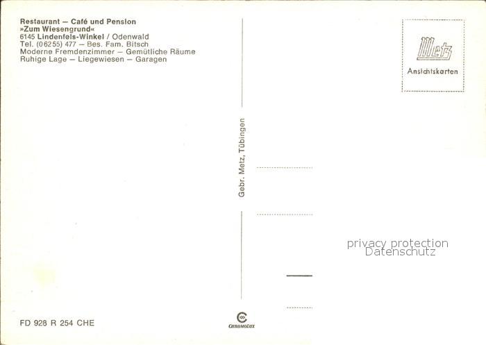 72504585 Winkel Odenwald Restaurant Cafe Pension Zum Wiesengrund postalisch nicht gelaufen Erhaltung siehe scans KatCode: 11110006431015