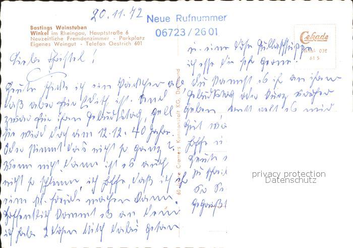 72048263 Winkel Oestrich-Winkel Bastins Weinstuben Gastraum postalisch nicht gelaufen Erhaltung siehe scans KatCode: 11110006439012