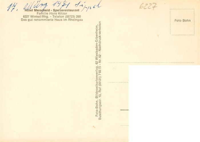 73890706 Winkel Oestrich-Winkel Hotel Merscheid Gastraeume Terrasse postalisch nicht gelaufen Erhaltung siehe scans [WerneD78] KatCode: 11110006439012