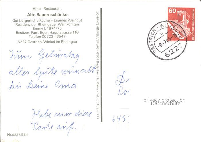 72433811 alte Postkarte Winkel Oestrich-Winkel Hotel Restaurant Alte Bauernschaenke postalisch gelaufen Erhaltung siehe scans KatCode: 11110006439012