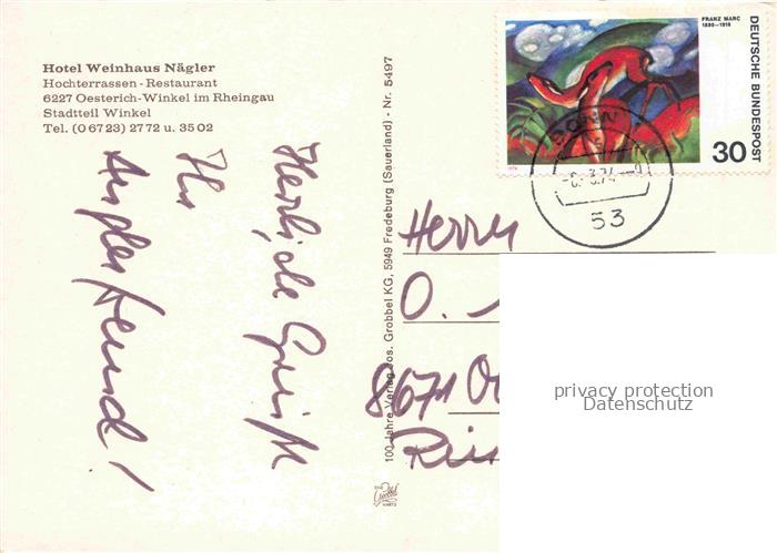 74005652 alte Postkarte Winkel Oestrich-Winkel Hotel Weinhaus Naegler Gastraum postalisch gelaufen Erhaltung siehe scans [WerneD78] KatCode: 11110006439012