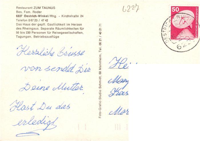 73935966 alte Postkarte Winkel Oestrich-Winkel Restaurant Zum Taunus Gastraeume Panorama postalisch gelaufen Erhaltung siehe scans [FriedD77] KatCode: 11110006439012