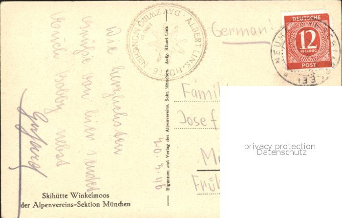 72133983 alte Postkarte Winkelmoos Winklmoos Skihuette postalisch gelaufen Erhaltung siehe scans KatCode: 11110009189139