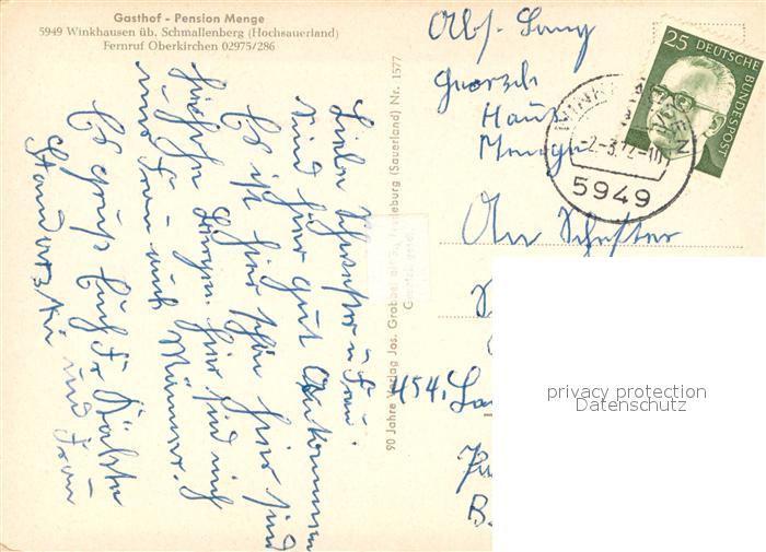 73717284 alte Postkarte Winkhausen Schmallenberg Gasthof Pension Menge postalisch gelaufen Erhaltung siehe scans [WerneD78] KatCode: 11110005958040