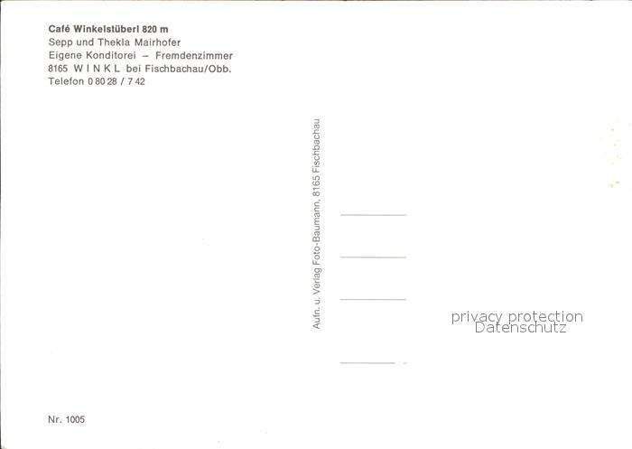 72303140 Winkl Fischbachau Cafe Winkelstueberl postalisch nicht gelaufen Erhaltung siehe scans KatCode: 11110009182114
