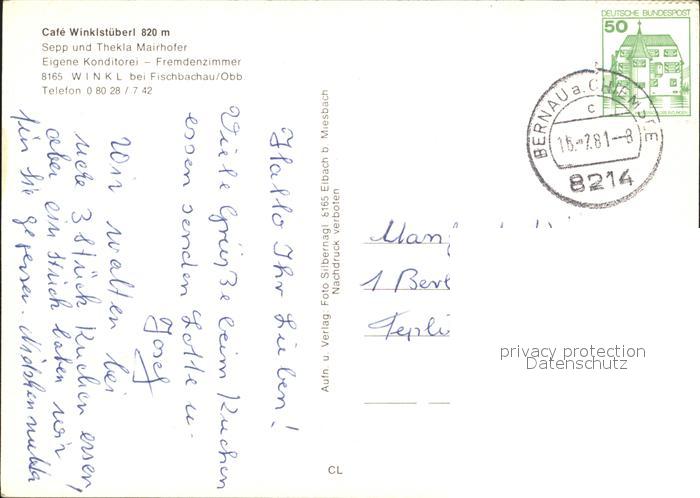 72317471 alte Postkarte Winkl Fischbachau Cafe Winklstueberl postalisch gelaufen Erhaltung siehe scans KatCode: 11110009182114