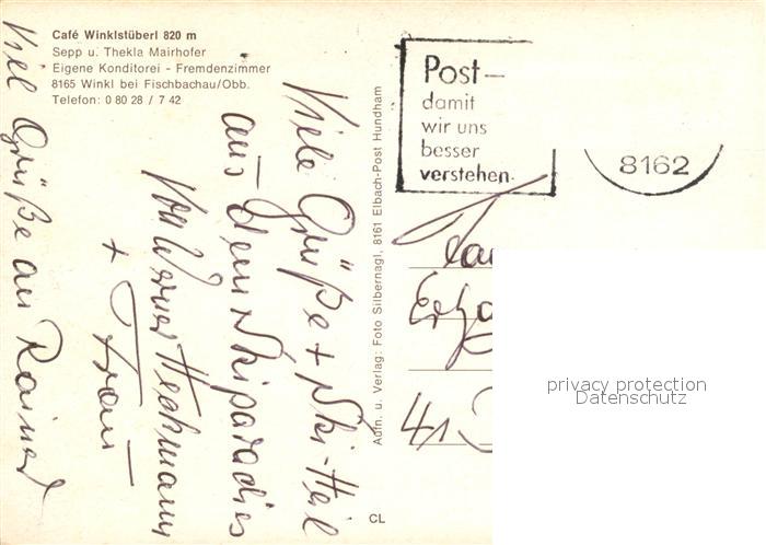 73310731 alte Postkarte Winkl Fischbachau Cafe Winklstueberl postalisch gelaufen Erhaltung siehe scans [NatalD47] KatCode: 11110009182114