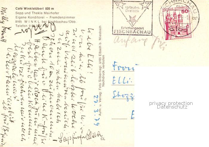 73166984 alte Postkarte Winkl Fischbachau Cafe Winklstueberl postalisch gelaufen Erhaltung siehe scans [KathaD81] KatCode: 11110009182114