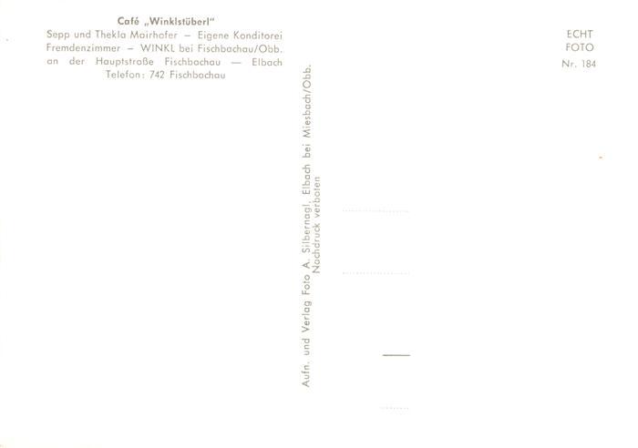 73890932 Winkl Fischbachau Cafe Winklstueberl postalisch nicht gelaufen Erhaltung siehe scans [FriedD77] KatCode: 11110009182114