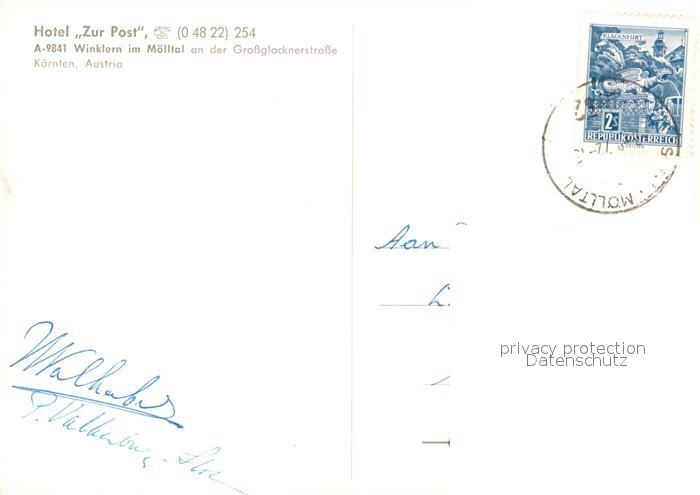 73518947 alte Postkarte Winklern Moelltal Hotel Zur Post an Grossglocknerstrasse postalisch gelaufen Erhaltung siehe scans [FriedD77] KatCode: 11390212020640