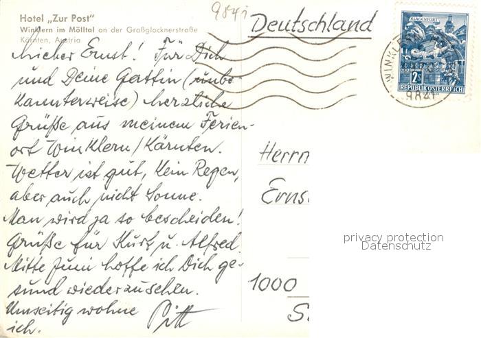 73516630 alte Postkarte Winklern Moelltal Hotel Zur Post Turm postalisch gelaufen Erhaltung siehe scans [FriedD77] KatCode: 11390212020640
