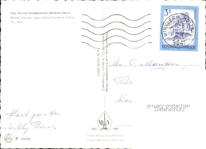 72093880 alte Postkarte Winklern Moelltal Moelltal mit Hoher Sonnblick postalisch gelaufen Erhaltung siehe scans KatCode: 11390212020640