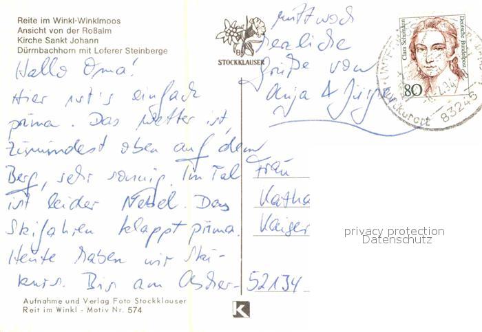 72724894 alte Postkarte Winklmoos Winkelmoos Reite Rossalm Kirche Duerrnbachhorn mit Loferer Steinberge postalisch gelaufen Erhaltung siehe scans [LiesaD40] KatCode: 11110009189139
