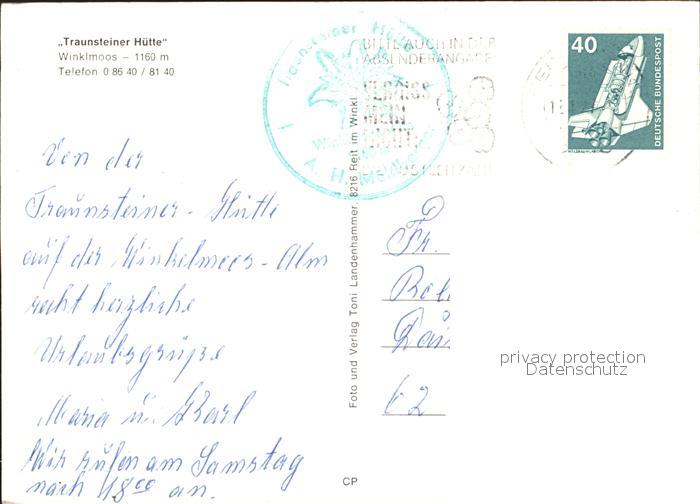 72016665 alte Postkarte Winklmoos Winkelmoos Traunsteiner Huette postalisch gelaufen Erhaltung siehe scans KatCode: 11110009189139