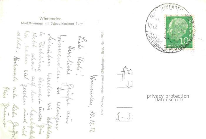 74141990 alte Postkarte Winnenden Marktbrunnen mit Schwaikheimer Turm postalisch gelaufen Erhaltung siehe scans [SanaeD93] KatCode: 11110008119085