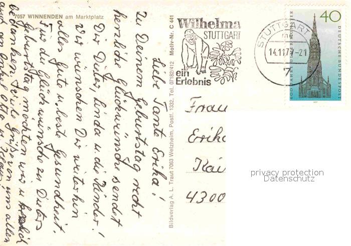 72839316 alte Postkarte Winnenden Marktplatz Fachwerkhaeuser postalisch gelaufen Erhaltung siehe scans [FriedD77] KatCode: 11110008119085