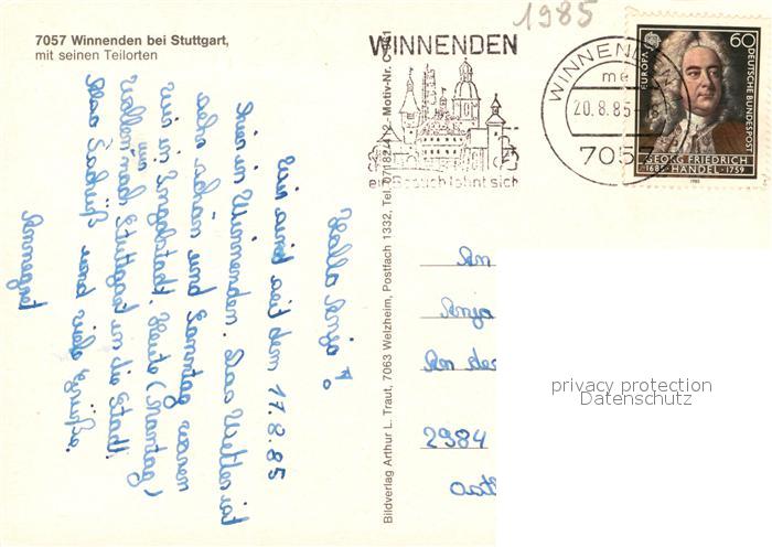 73063000 alte Postkarte Winnenden Marktstr Torturm Hartmannsweler Buerg Birkmannsweler Breuningsweiler Mineralfreibad Hoefen postalisch gelaufen Erhaltung siehe scans [FriedD77] KatCode: 11110008119085