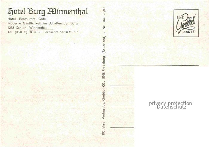74109673 Winnenthal Xanten Wesel NRW Hotel Burg Winnenthal Terasse Fontaene postalisch nicht gelaufen Erhaltung siehe scans [WerneD78] Wern Katcode 11110005170052