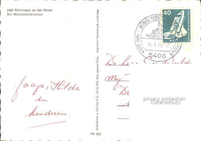 72270194 alte Postkarte Winningen Mosel Am Weinhexenbrunnen postalisch gelaufen Erhaltung siehe scans KatCode: 11110007137230