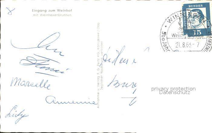 72408914 alte Postkarte Winningen Mosel Eingang zum Weinhof mit Weinhexenbrunnen postalisch gelaufen Erhaltung siehe scans KatCode: 11110007137230