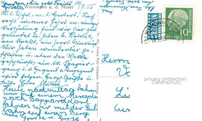 72825893 alte Postkarte Winningen Mosel Gesamtansicht postalisch gelaufen Erhaltung siehe scans [PaolaD17] KatCode: 11110007137230